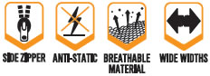 • Side zip for easy entry